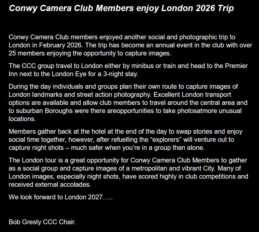 Full details will be circulated when we have the programme from Fotospeed.